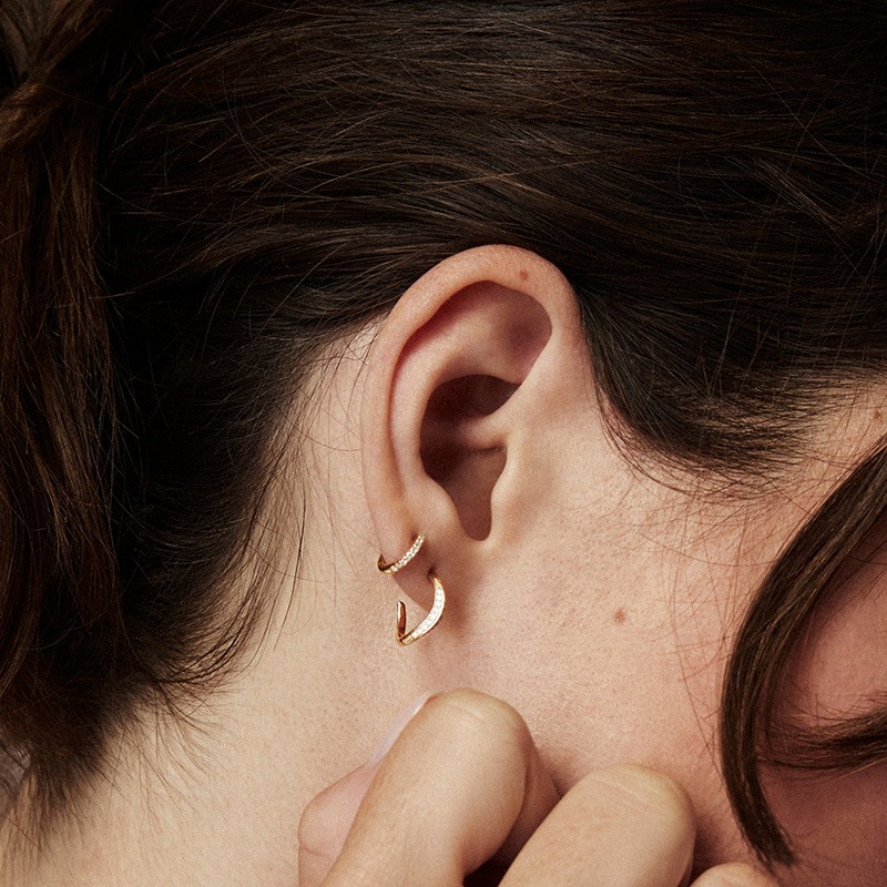 925 Sterling Silver Diamond Small Hoop E