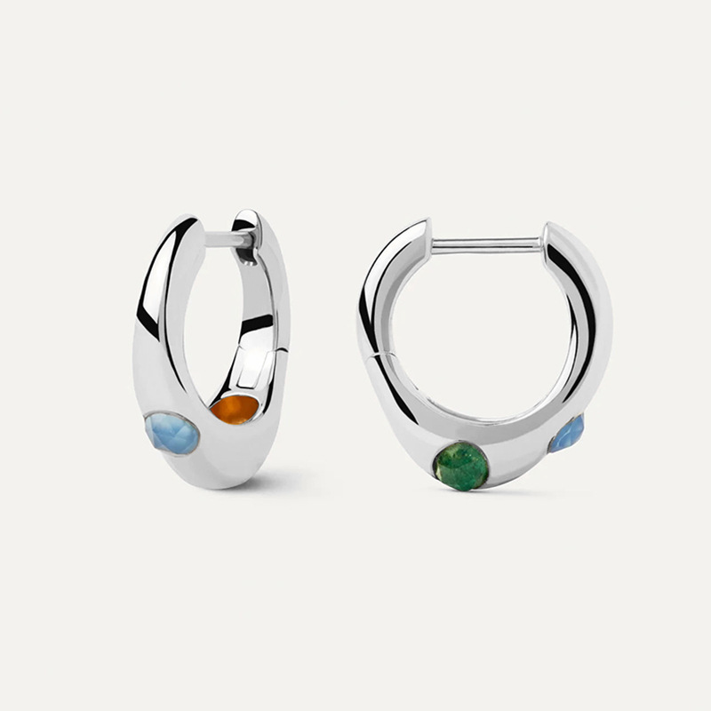 Gold Plated C-shaped 925 Sterling Silver Zircon Turquoise Earrings