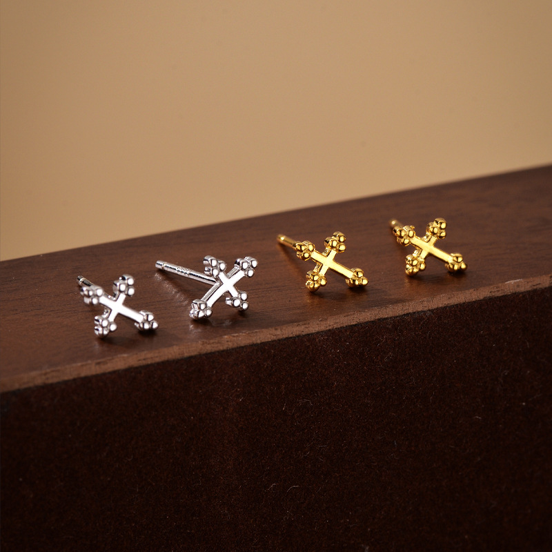 Gold Plated Mini Cross Stud Earrings