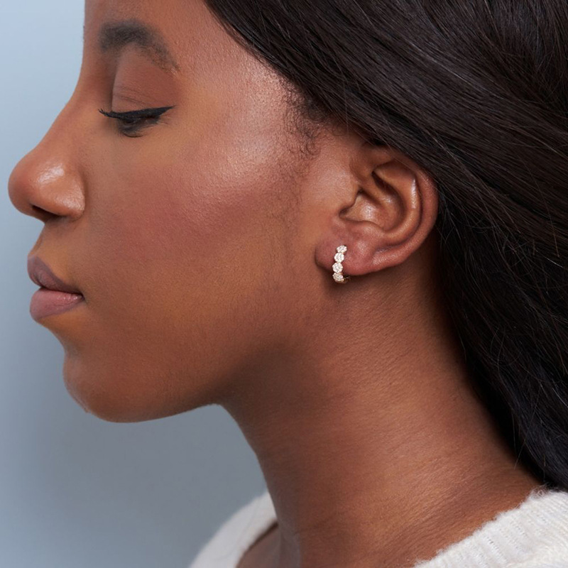 Pave Cubic Zirconia Flower Huggie Hoop Earrings
