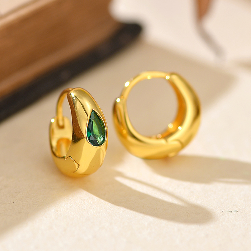 Round Glossy Green Zircon Hoop Earring
