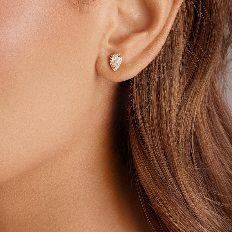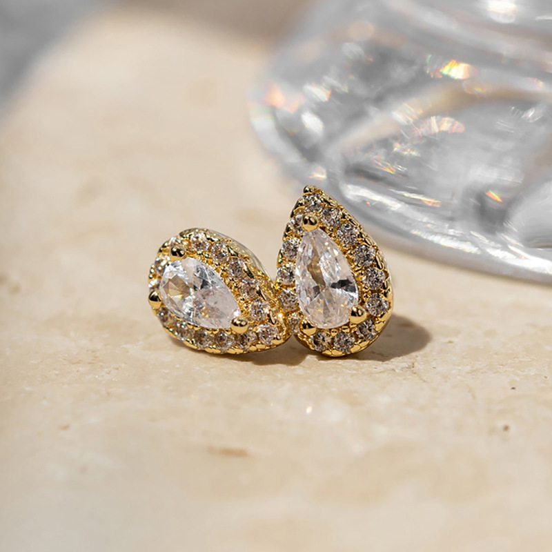 Round Heart Waterdrop Square Zircon 18K Gold Plated Stud Earrings