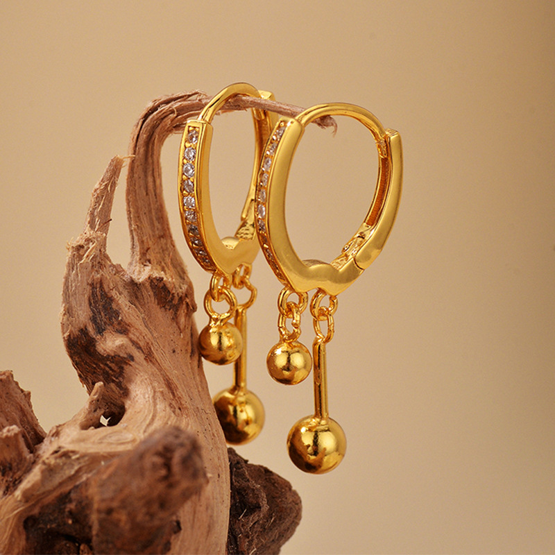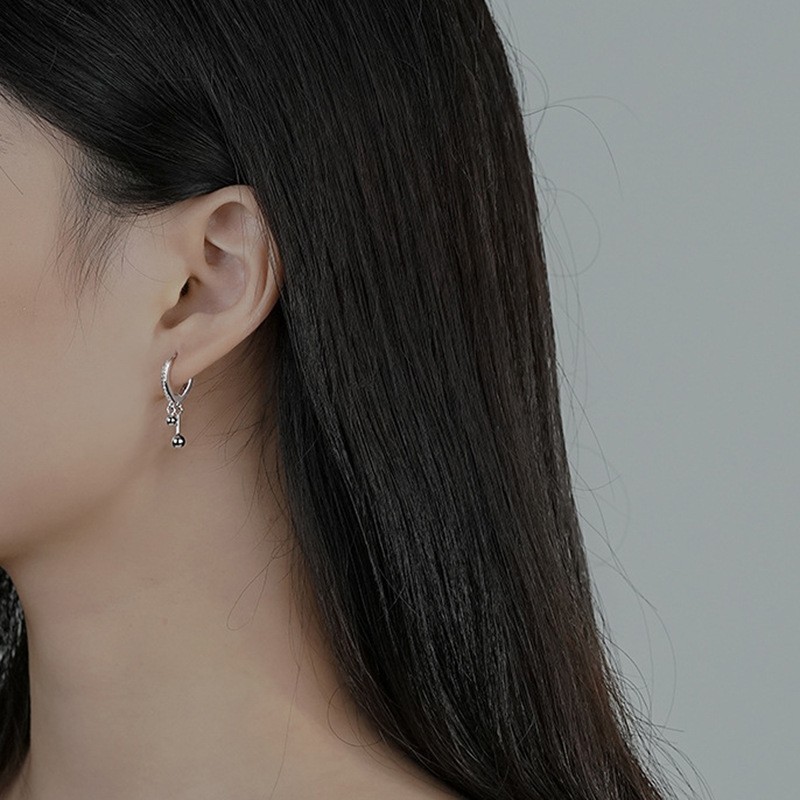 S925 sterling Silver Beads Drop Hoop Earrings