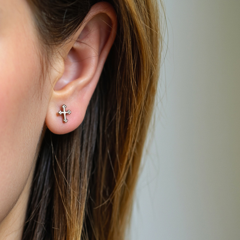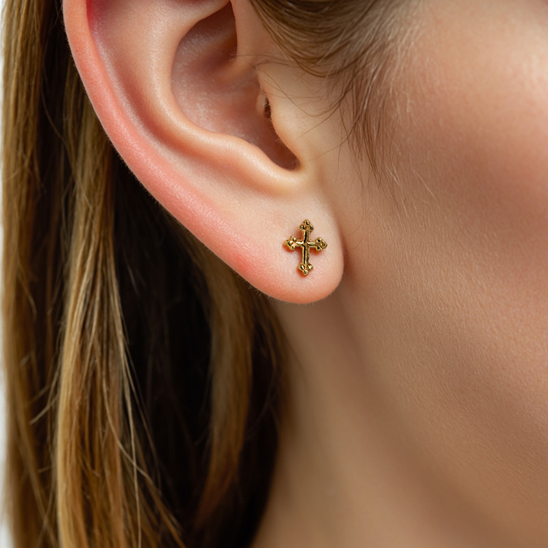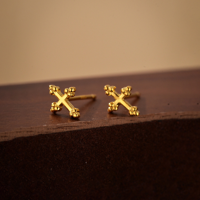 Gold Plated Mini Cross Stud Earrings
