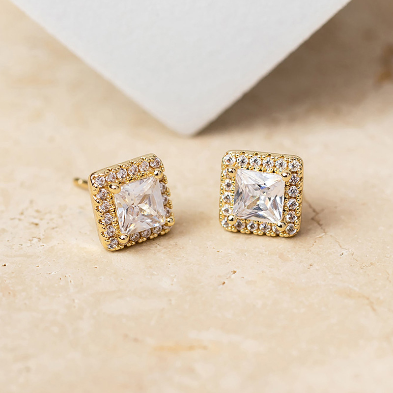 Round Heart Waterdrop Square Zircon 18K Gold Plated Stud Earrings