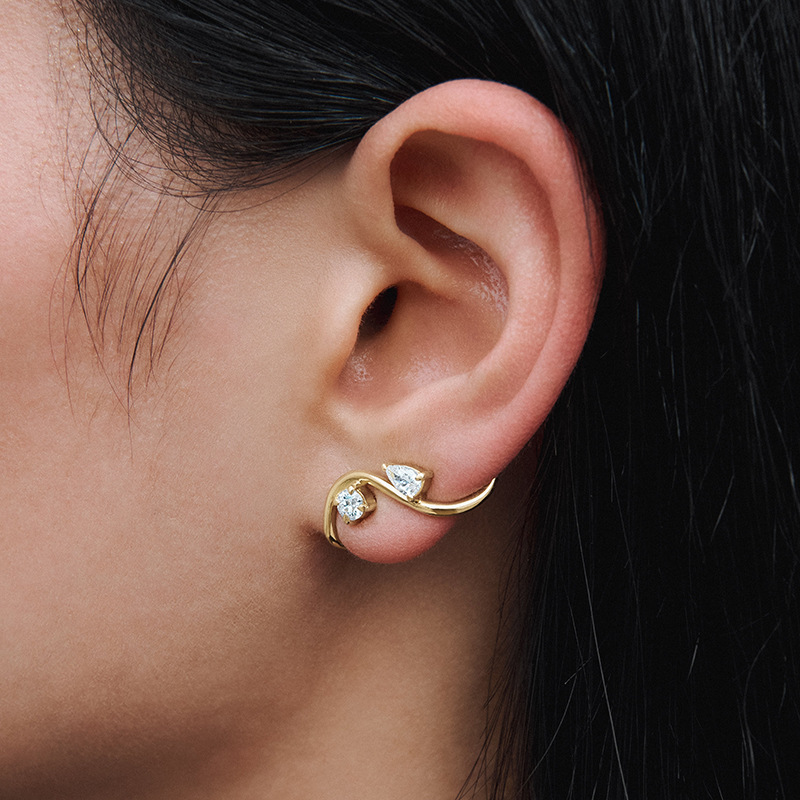 Twisted Lines with Irregular Cz Stud Earrings